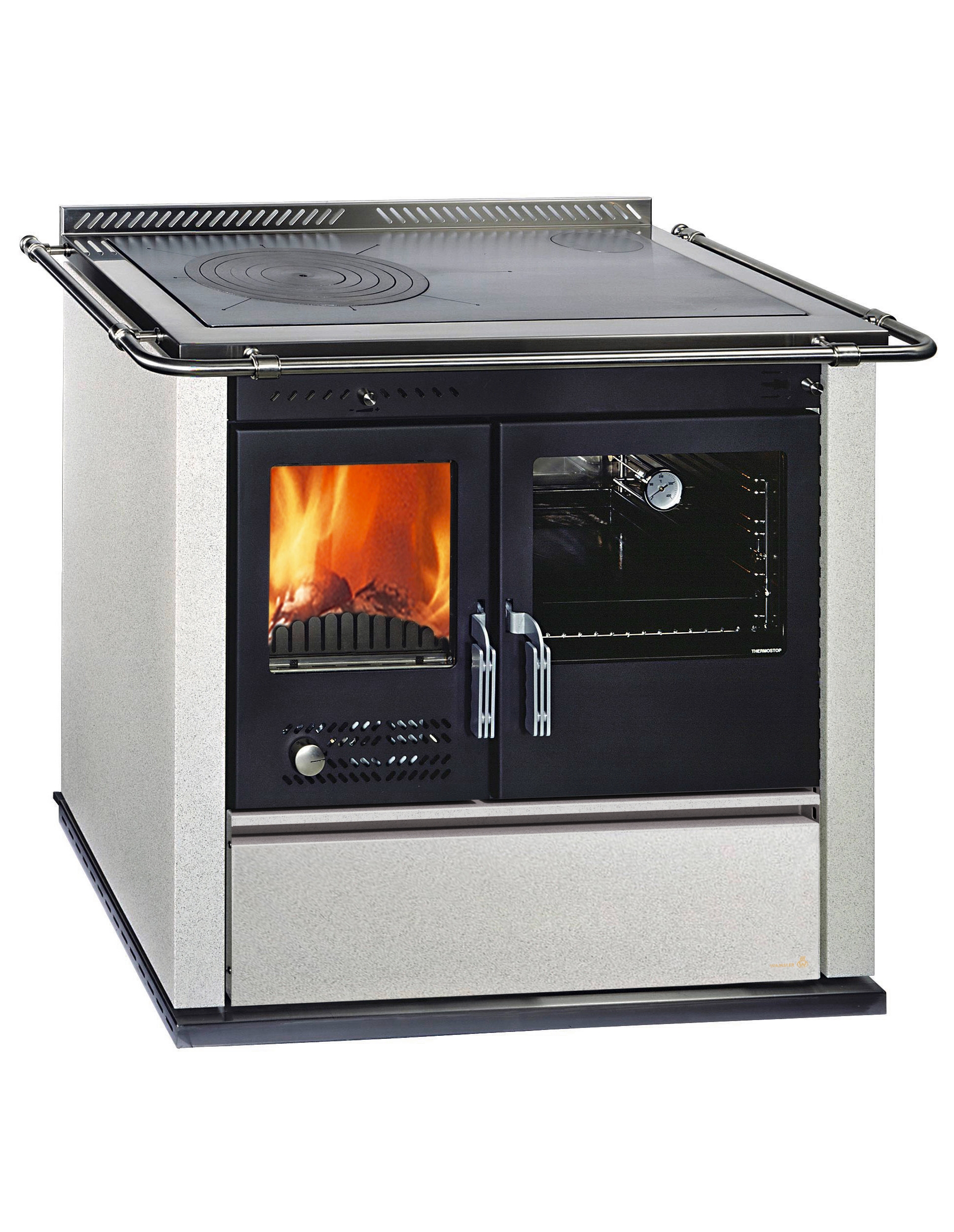 Stilvolles Ambiente und angenehme Strahlungswärme für die Küche: Der Fensterherd verspricht freien Blick auf das lodernde Flammenspiel mit seiner gr0ßen Sichtscheibe in der Heiztüre.  Der Holzherd besticht durch hochwertige Materialien und präzise Verarbeitung. Die Heiztür ist mit hinterlüfteter Doppelverglasung ausgestattet. So wird die Abstrahlwärme deutlich reduziert. Das geräumige Bratrohr sorgt mit Temperaturanzeige und Beleuchtung für reichlich Komfort und Kochvergnügen. Die stilvolle Herdstange kann für den Einbau in die Küchenzeile abgenommen werden.