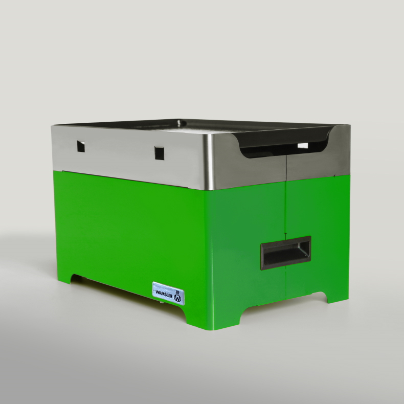 Die Gussplatte ist mit den beiliegenden Griffen jederzeit abnehmbar. Der Brenner ist mit Pellets und einem Anzünder zu füllen und anzuzünden. Nach ca. 15 Minuten kann mit dem Grillen begonnen werden.