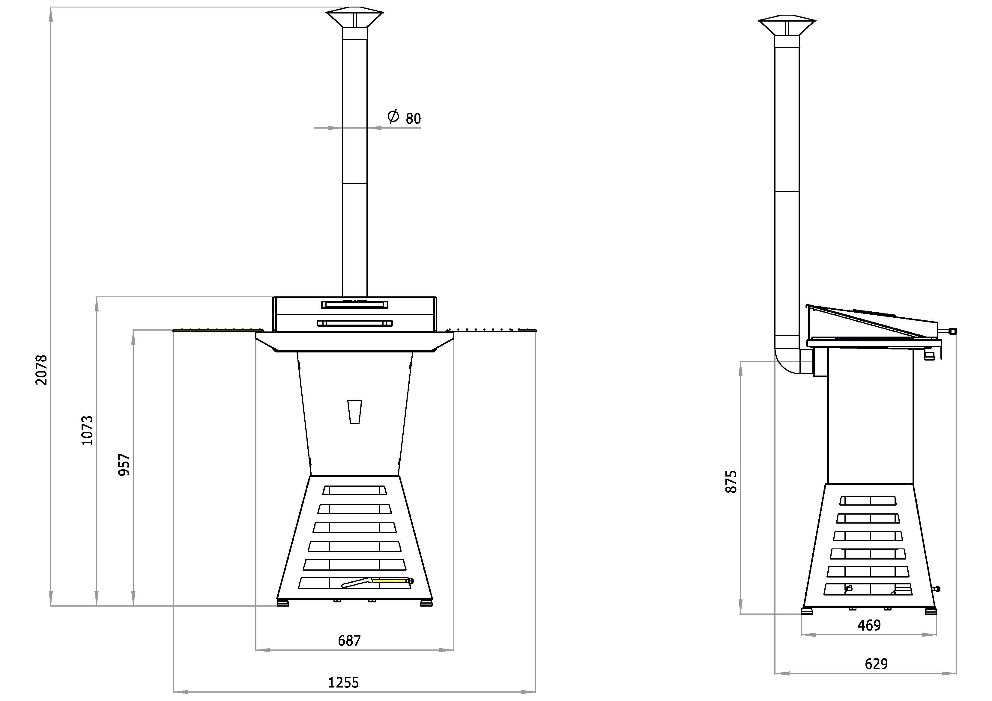 Die massive Gussgrillplatte bewahrt das Grillgut vor direktem Kontakt mit der Feuerstelle und sorgt so für eine schonende Zubereitung ohne Funkenflug oder Fettbrand. Auslaufende Flüssigkeiten aus dem Grillgut sammeln sich in einer speziell dafür vorgesehenen Auffangschale.