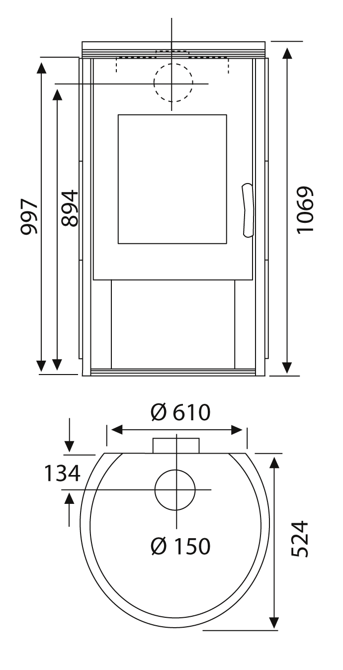 • Abgasanschluss hinten/oben: Ø 150 mm